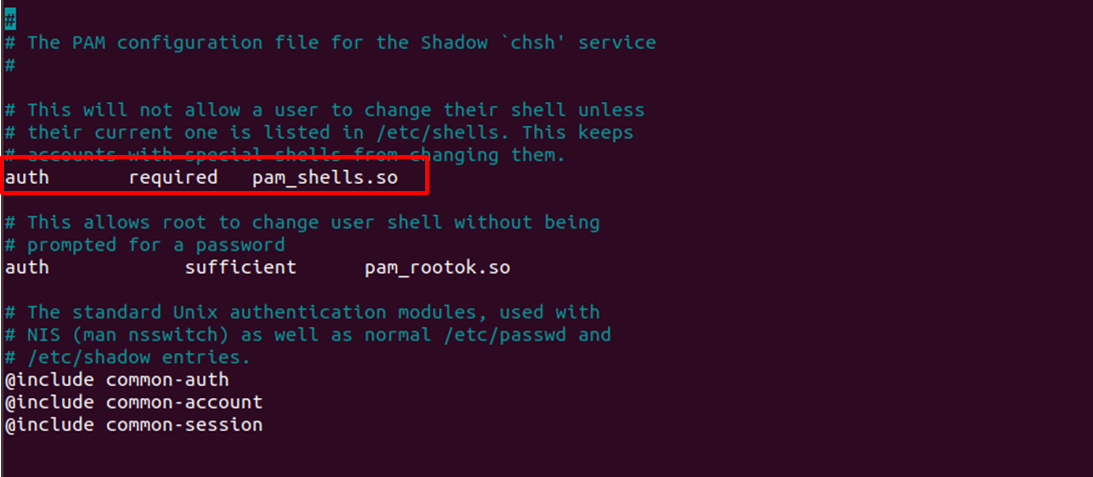 sudo nano /etc/pam.d/chsh